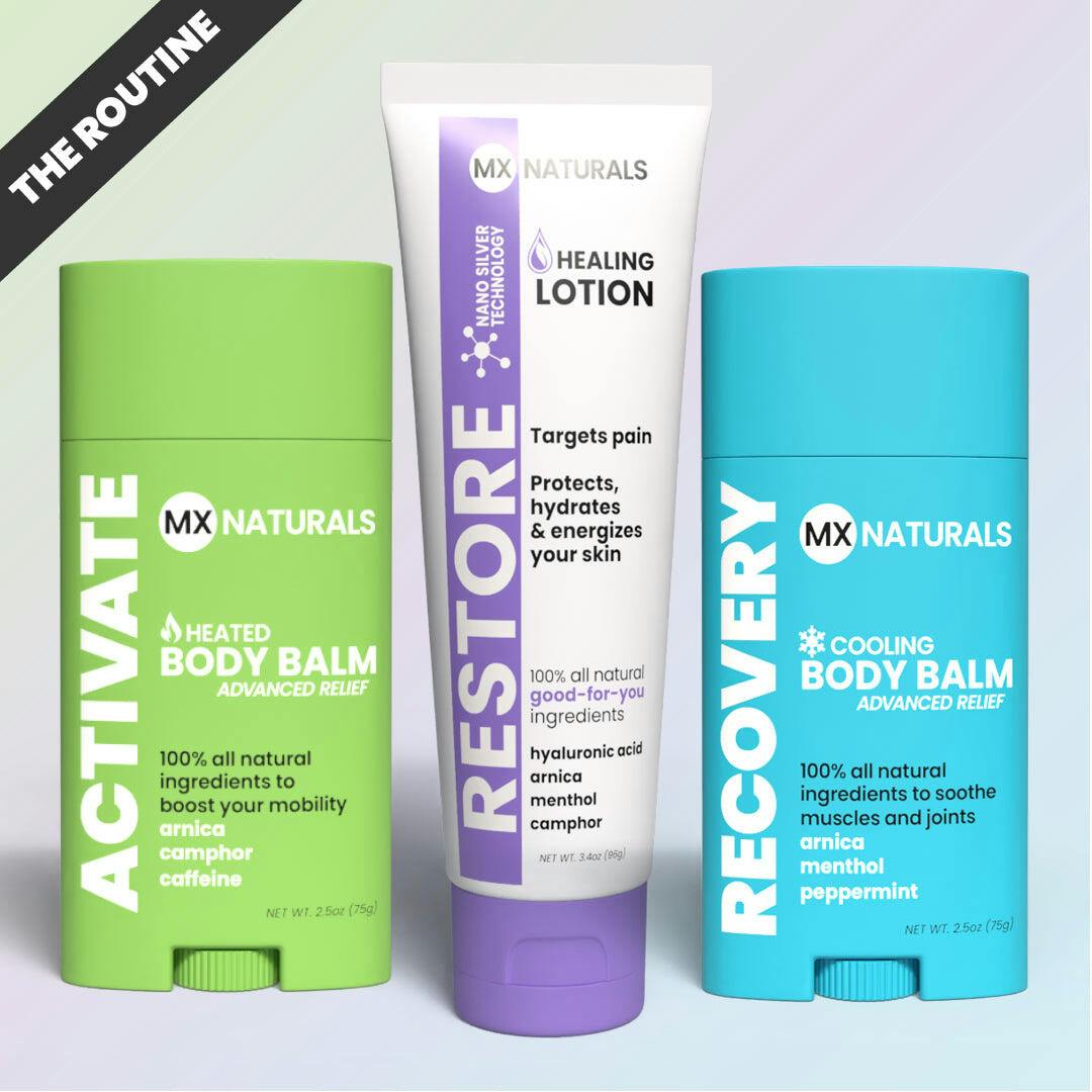 mx naturals' revolutionary activate & recovery body balms & restore lotion use damn good, natural ingredients like arnica, camphor, menthol, tea tree, peppermint & eucalyptus to target tense, painful, impacted areas.
